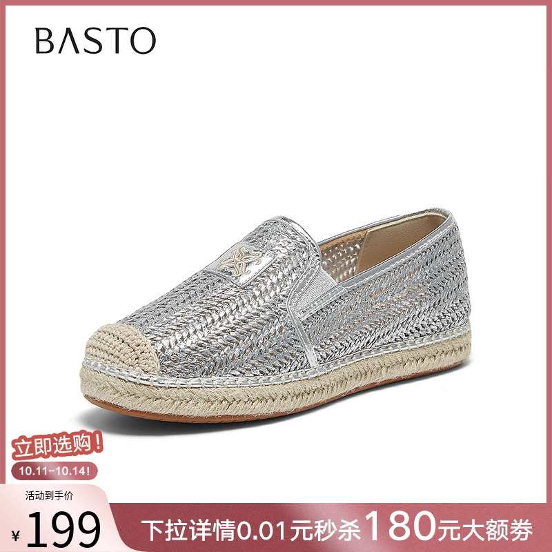 一脚蹬平底女单鞋 舒适透气厚底渔夫鞋 A0228AA5 新款 百思图2025春季