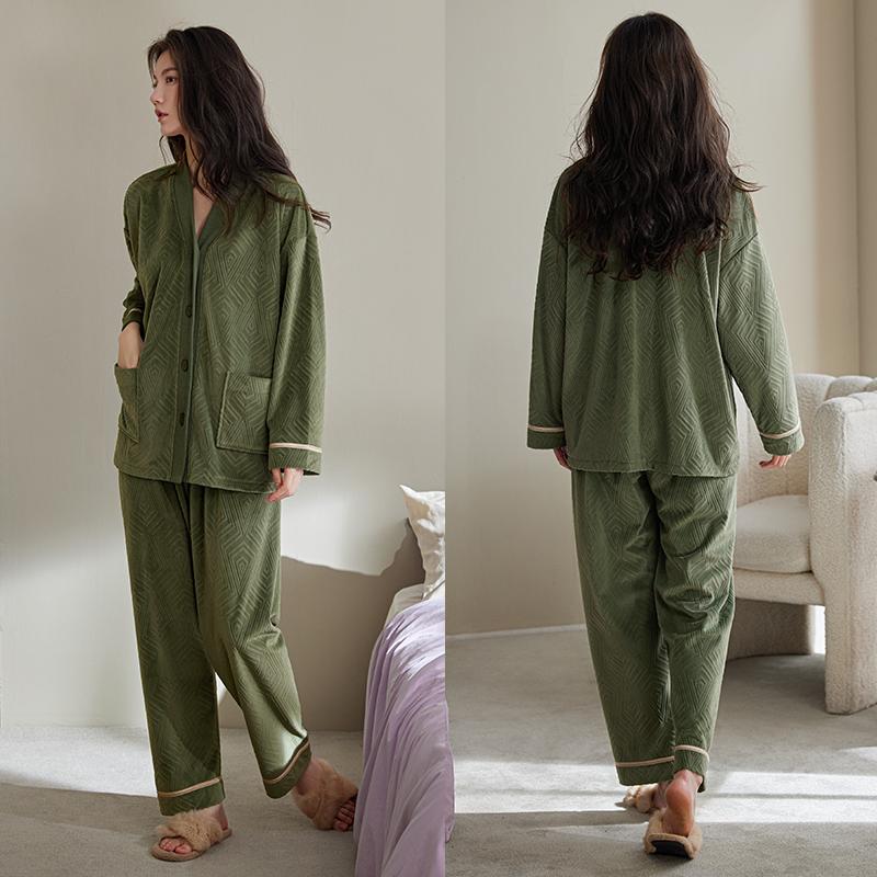 套装 海岛绒家居服春秋款 加绒加厚珊瑚绒保暖时尚 轩靓睡衣女秋冬季