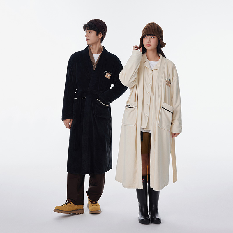 亲嘴猫海岛绒情侣睡袍女秋冬季 家居服浴袍 睡衣性感晨袍珊瑚绒男士