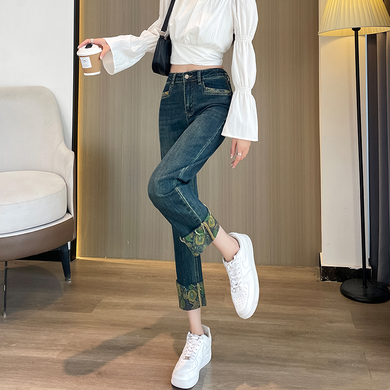 女冬40933286 100%棉复古高腰阔腿直筒牛仔裤 艾诺丝雅诗 建模裤