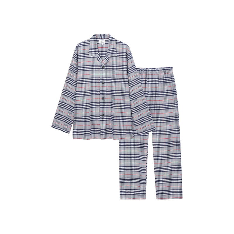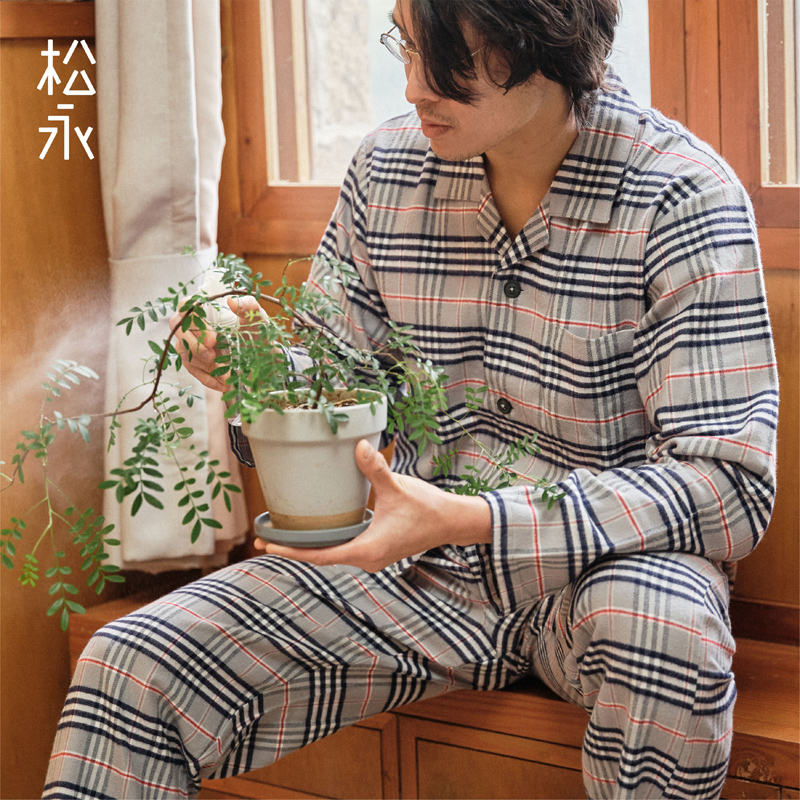 格子家居服套装 松永秋冬纯棉磨毛男士 简约大码 长裤 保暖 睡衣长袖