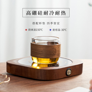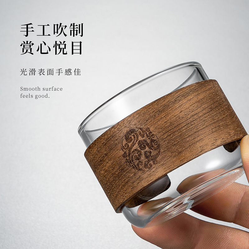 玻璃小茶杯耐高温品茗杯家用单个透明喝茶杯子胡桃木防烫功夫茶具