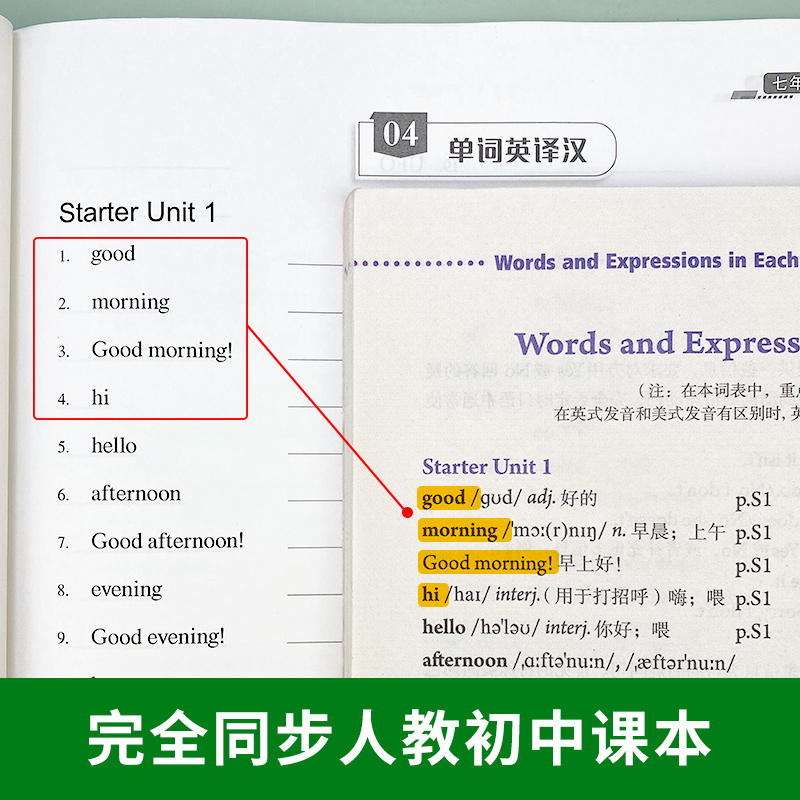 七八九年级上下册课本同步听写本记忆本英语单词默写3500词汇卡片中考 初中英语单词默写本单词短语句子 易蓓 默写100英语人教版