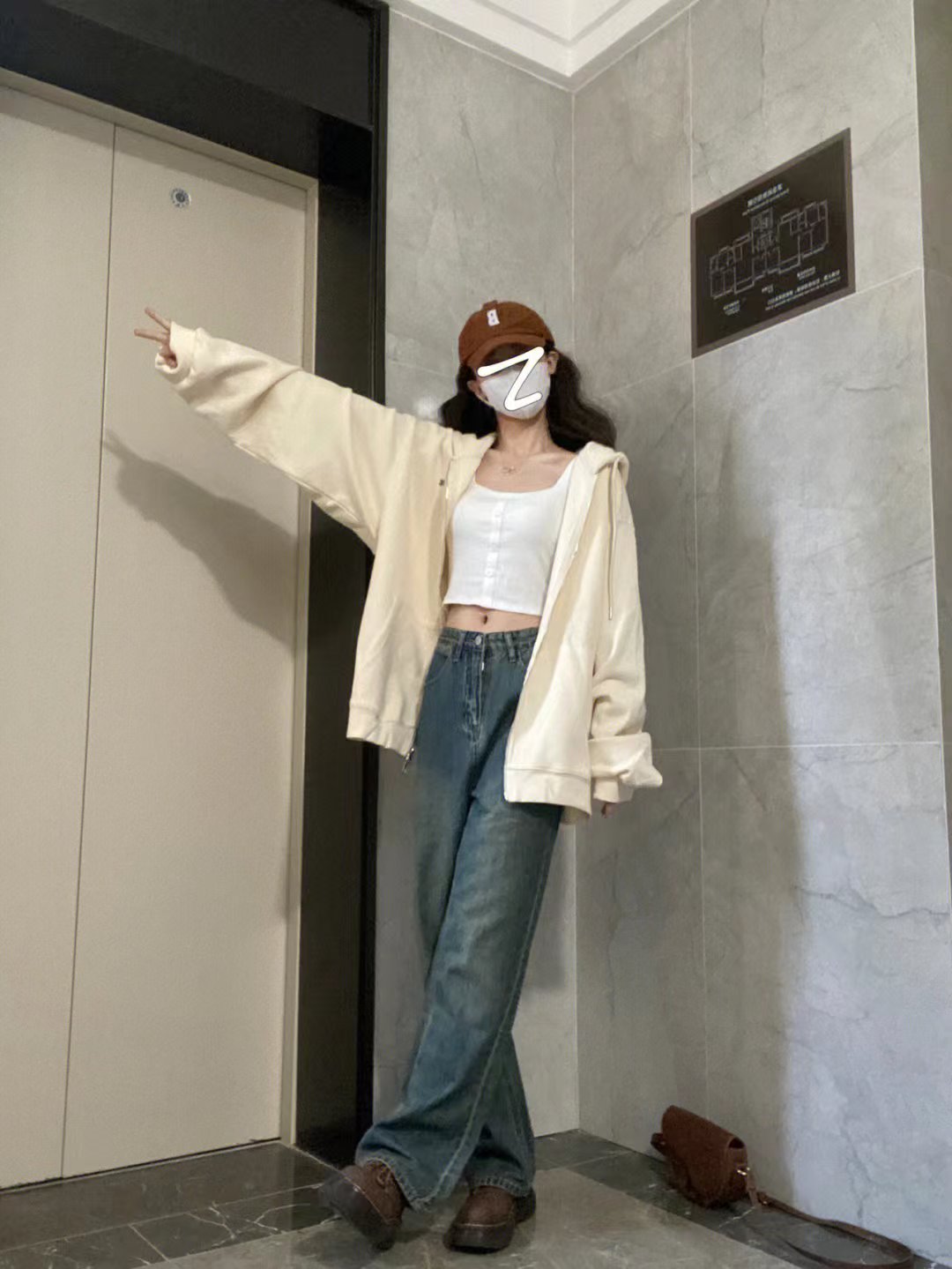 美式 外套 加绒加厚运动卫衣女秋冬oversize宽松棒球服连帽拉链开衫