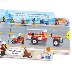 Push Book推拉活动纸板绘本书 英文原版 Slide and Pull Site建筑工地A Station消防站Building 乐高Lego机关操作书2册Fire 现货