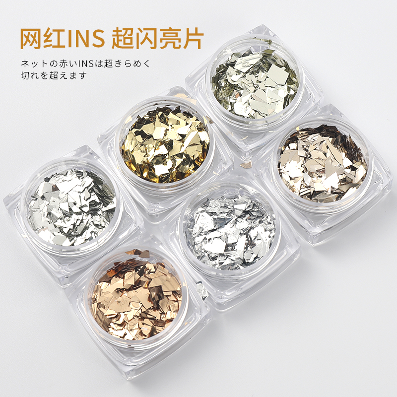 网红爆款 美甲玻璃纸碎片糖果纸极光纸指甲饰品不规则碎片亮片套装