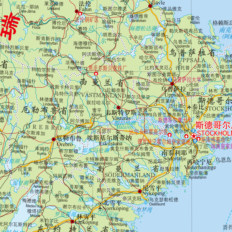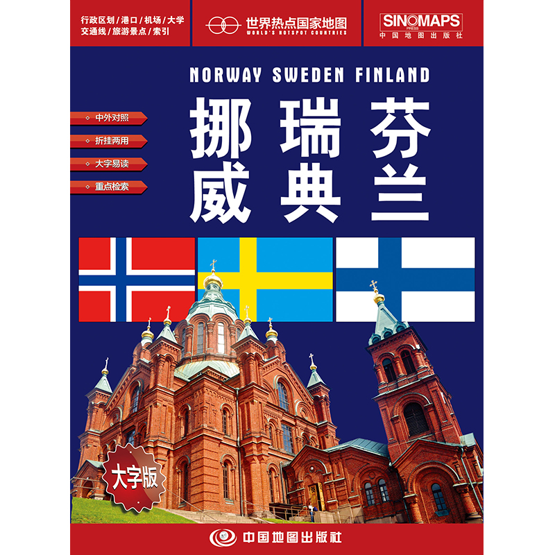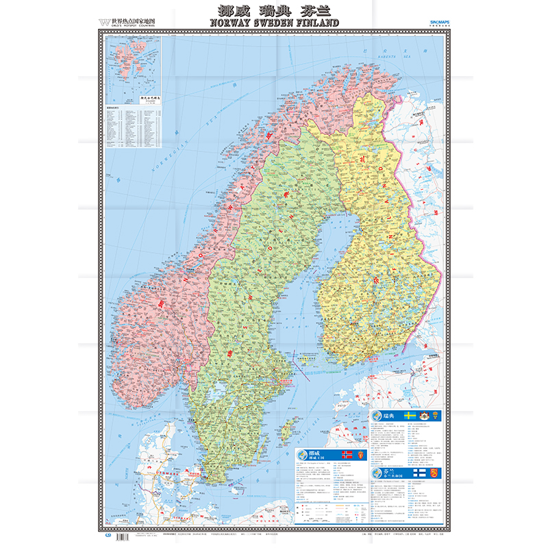 芬兰 瑞典 大字版 中外文对照 865×1170mm 世界热点国家地图 挪威瑞典芬兰旅游出行大学城市景点 挪威