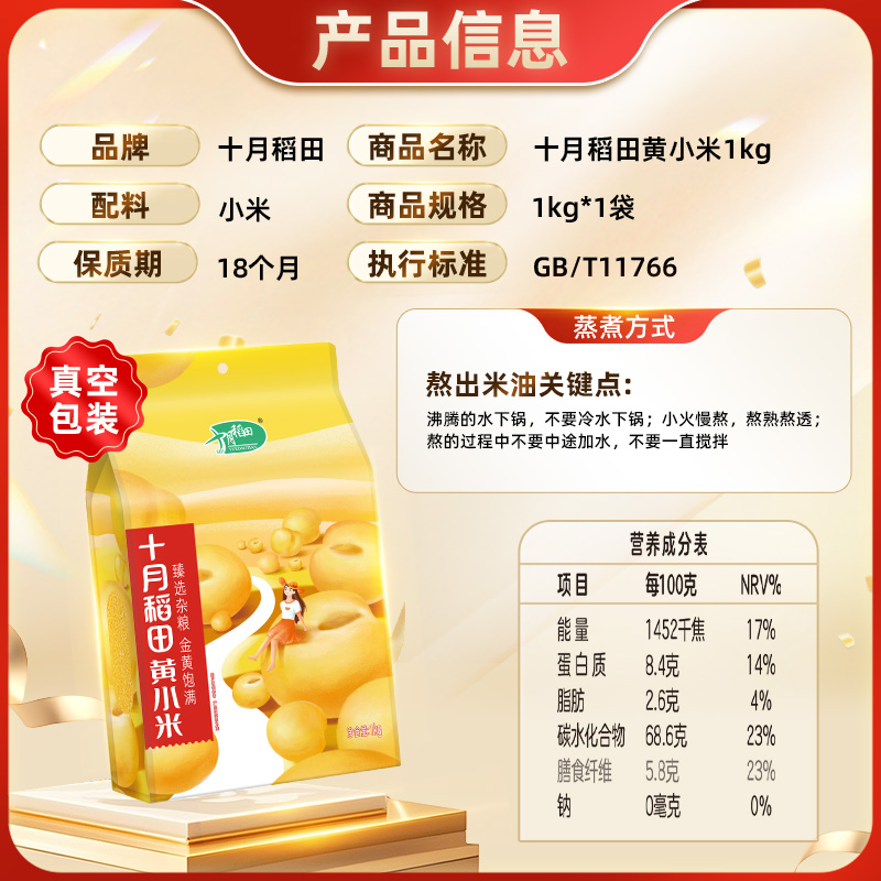 十月稻田黄小米1kg小米五谷杂粮粥粗粮小米粥大米伴侣 半日达