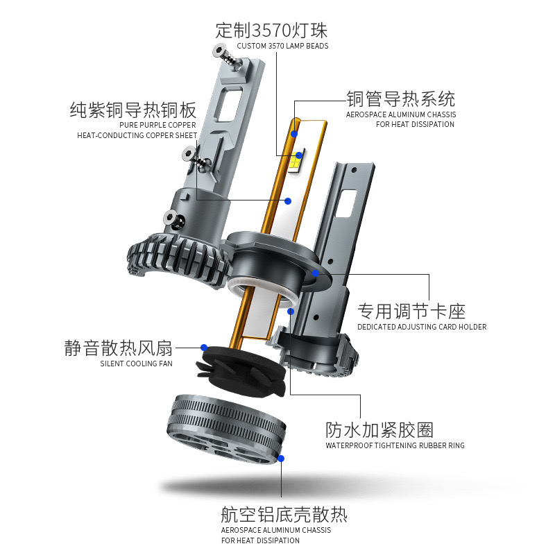 蒙迪欧LED大灯斜口偏芯专用H7近光H11远光超亮短款 适用于13 17款