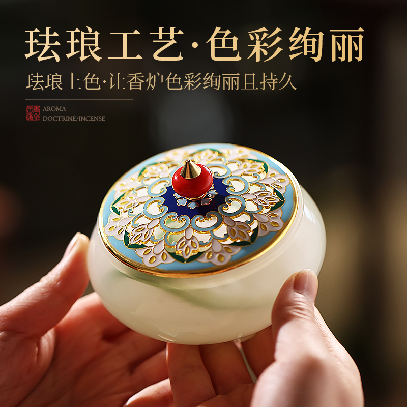 珐琅彩玉石小香炉家用室内焚香炉熏香炉檀香茶道盘香炉沉香香薰炉