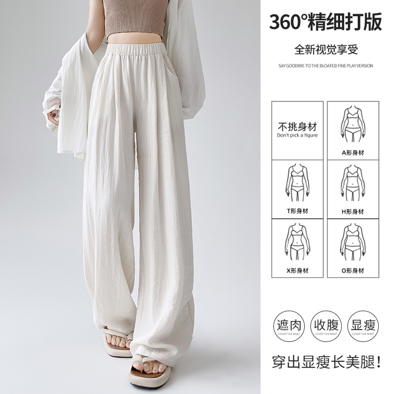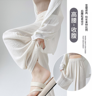 高腰宽松垂感直筒冰丝显瘦阔腿裤 白色棉麻感山本裤 女春秋2025新款