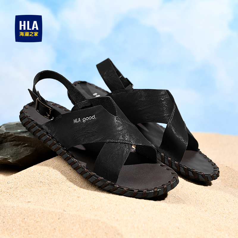 外穿透气皮凉拖两用开车防滑真皮沙滩鞋 海澜之家凉鞋 新款 夏季 男士