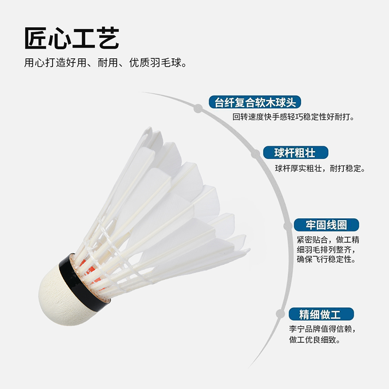 G300室内比赛训练球 G200 李宁羽毛球 耐打稳定鹅毛球尼龙球G100
