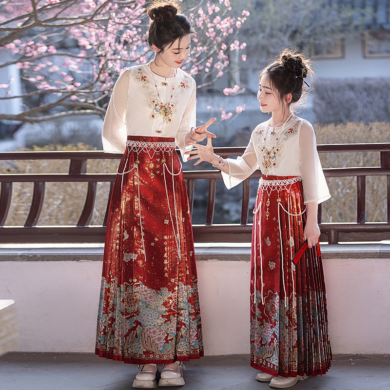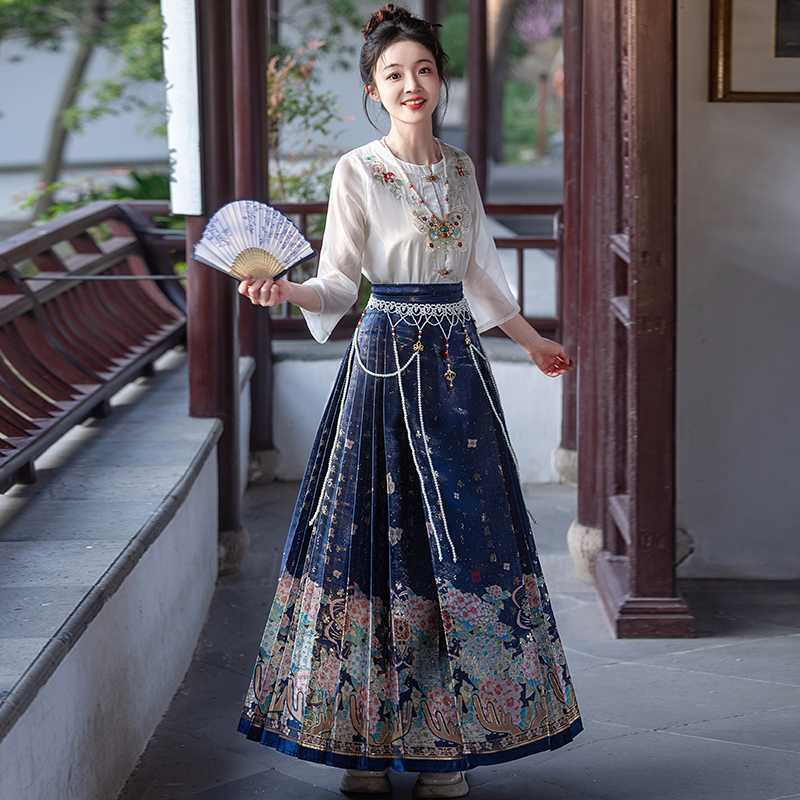 鹿神 薄款 明制螺钿马面裙套装 夏季 日常汉服女2025新款 醉雨朵