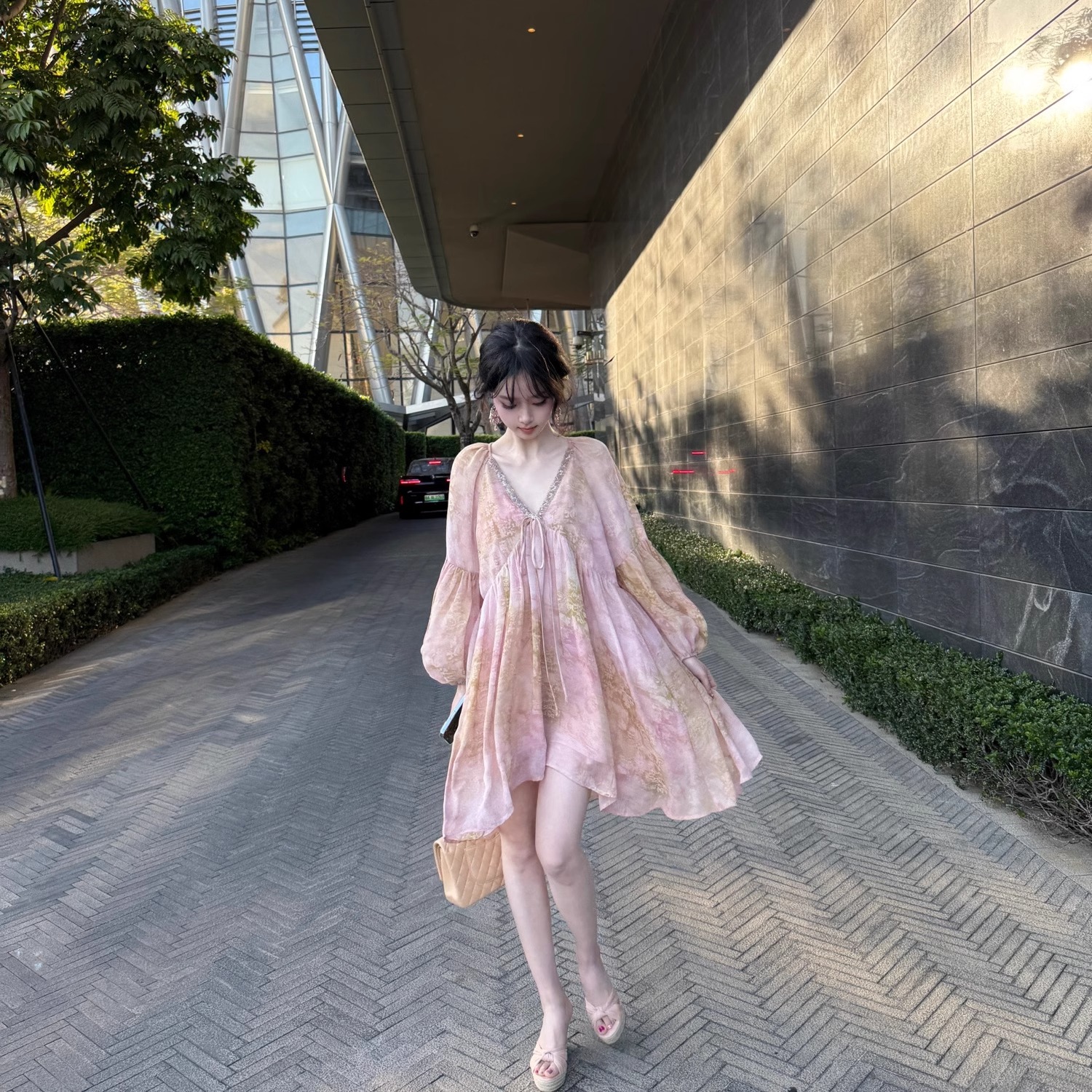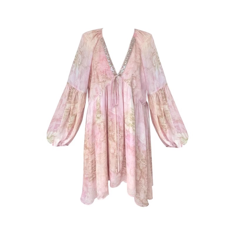 爵莱菲本人矜贵古早氛围感重工钉珠显白温柔度假连衣裙大码 秋季
