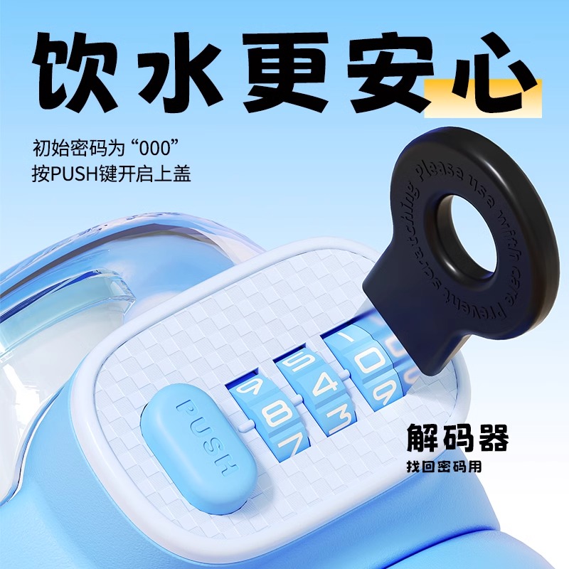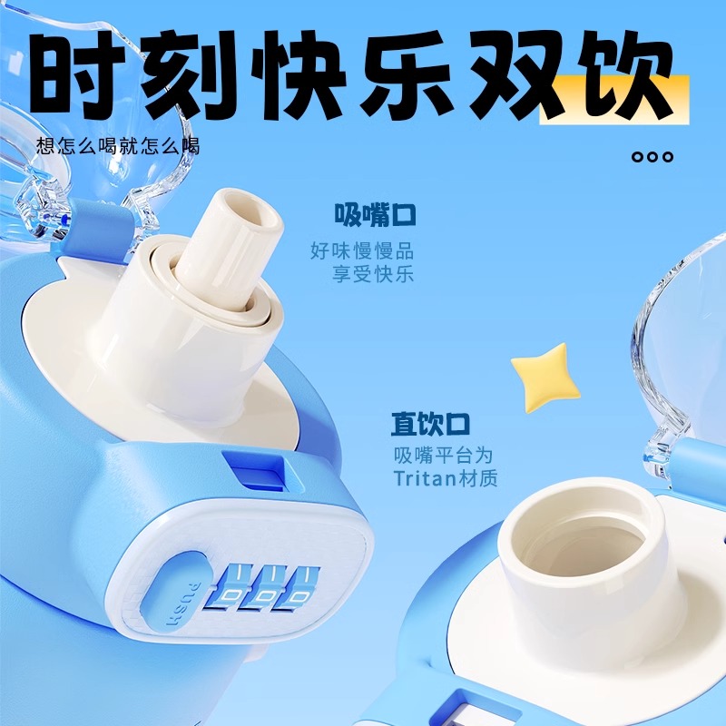 智净熊儿童密码 耐高温吸管杯 锁水杯吸管杯子男女孩小学生上学夏季