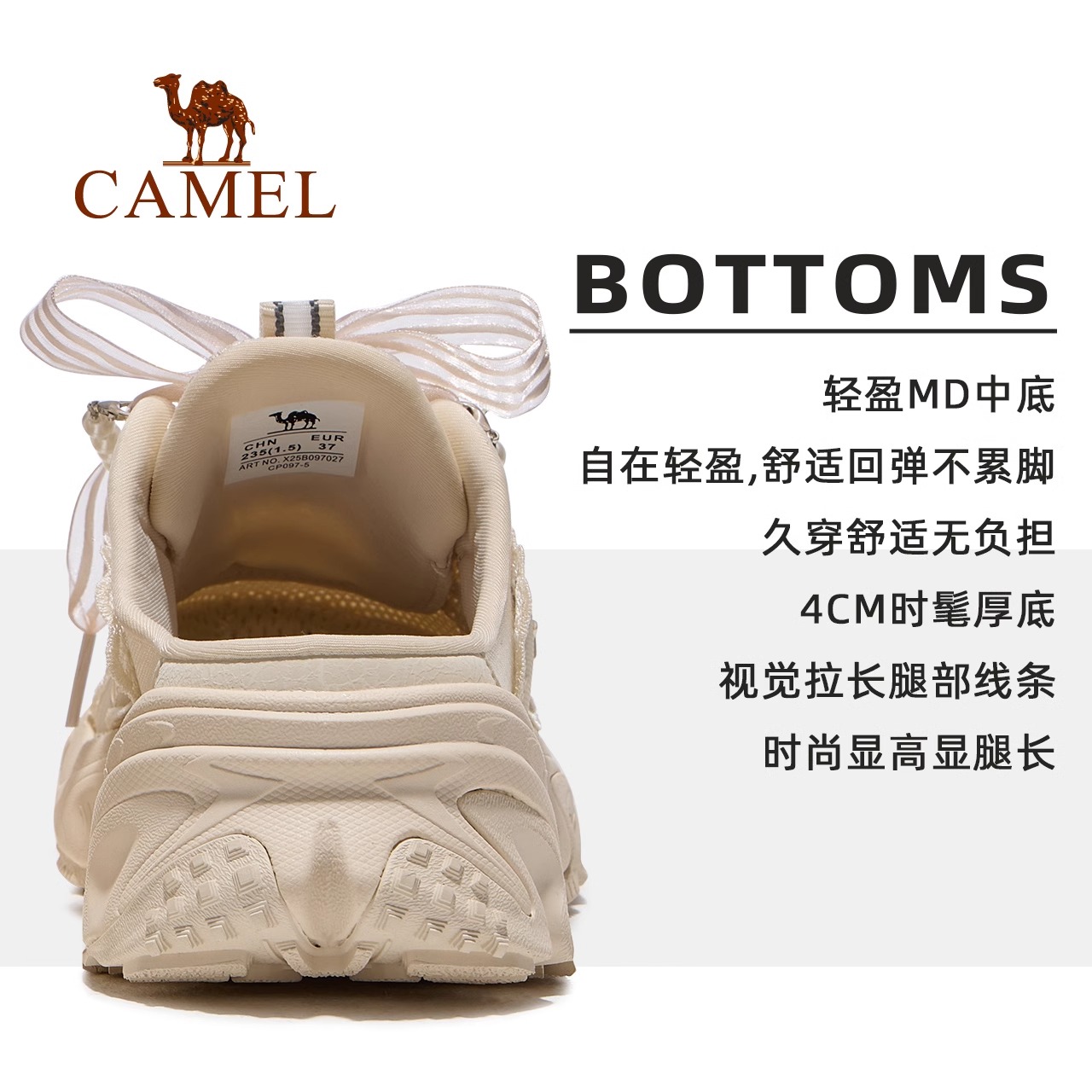 轻便半拖鞋 增高厚底防滑百搭老爹鞋 女户外2025新款 骆驼星环休闲鞋