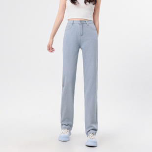 新款 子2025春季 修身 显瘦小直筒长裤 女 GY真维斯女装 浅蓝色牛仔裤 裤