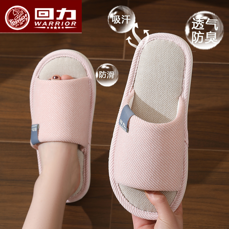 子女鞋 居家鞋 春秋地板拖 室内防滑家居四季 回力亚麻拖鞋