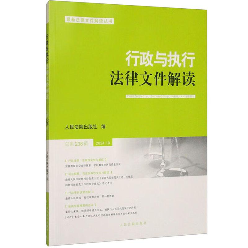 总第238辑 法律性文件与解读 指导案例 正版 新类型疑难案例选评 2024年第10辑 典型案例与解读 人民法院 行政与执行法律文件解读