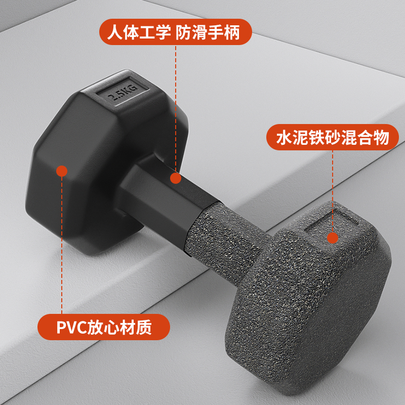 六角哑铃男女健身家用器材八角杠铃壶铃儿童包胶防滚动小哑铃一对