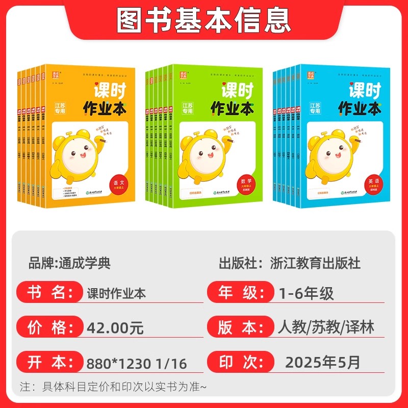 同步训练学霸课时作业通城实验班 江苏教译林版 2025新版 课时作业本语文数学英语一二年级三年级四五六年级上册下册RJ人教版