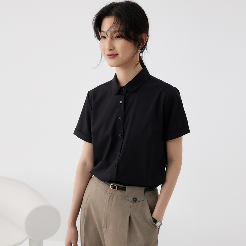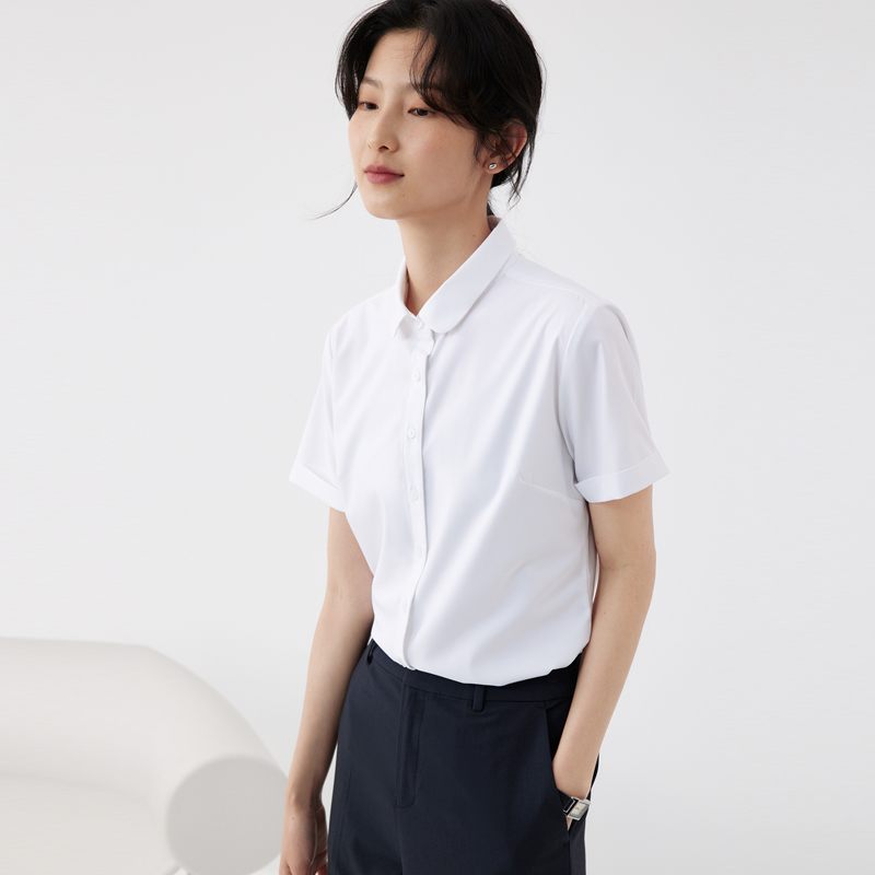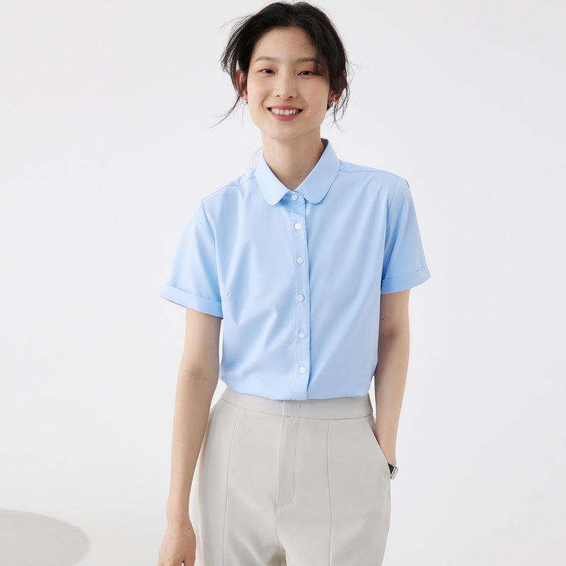 夏季 女职业工装 通勤商务穿搭银行面试正肩衬衣 衬衫 宿·色短袖