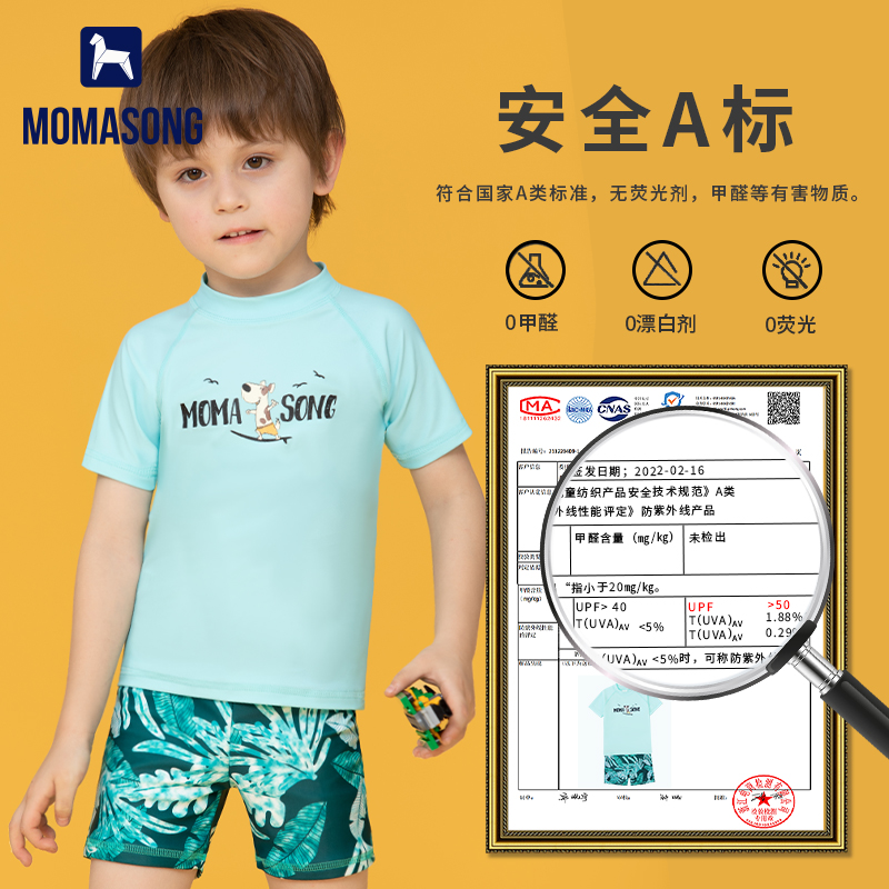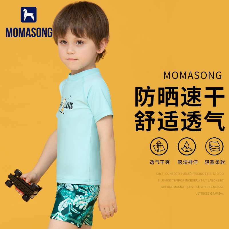 Momasong儿童泳衣男童夏新款 宝宝分体小中大童男孩防晒温泉游泳衣