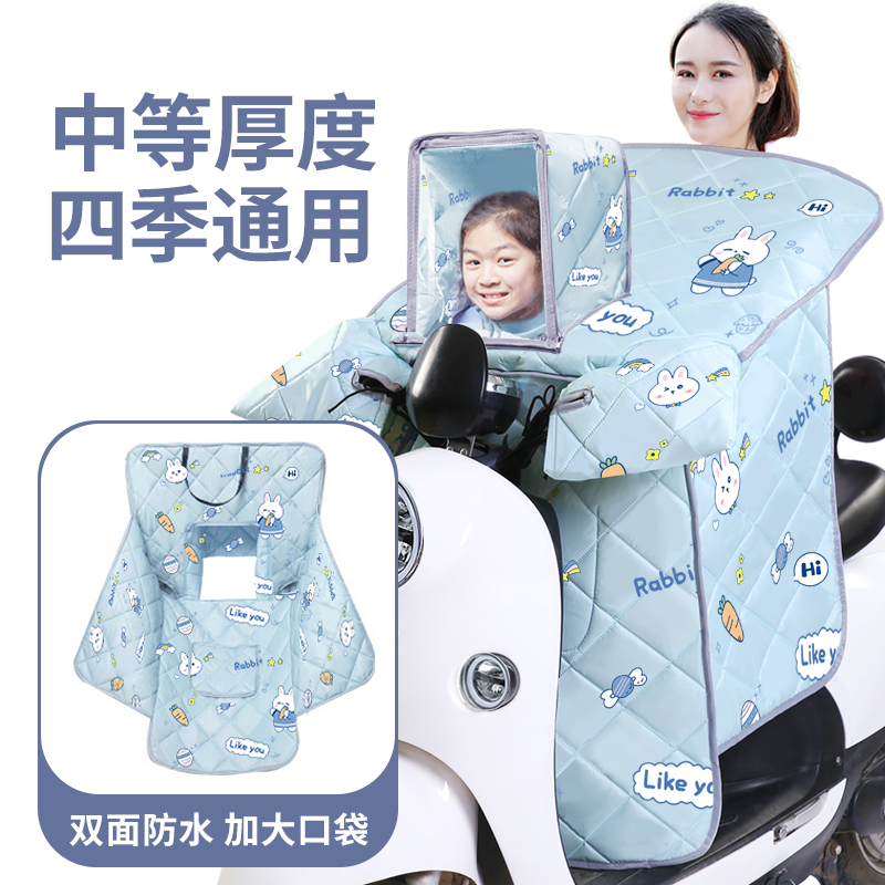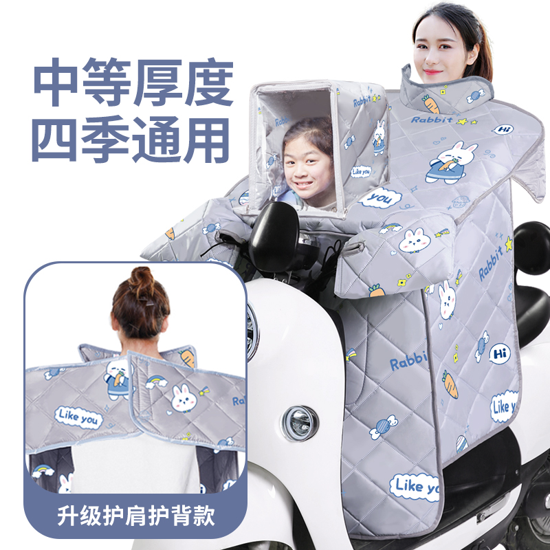 通用 加绒加厚电瓶摩防水防风罩四季 亲子款 电动车挡风被带小孩冬季