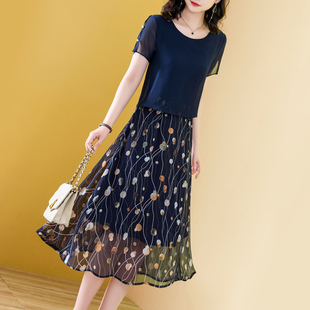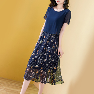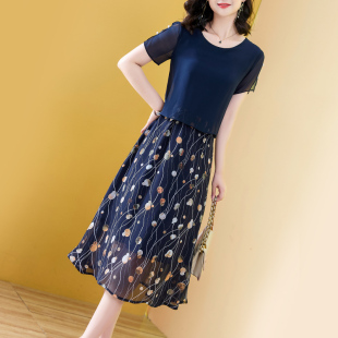 拼接花边立领新中式 裙子女新款 连衣裙18465815 佐丹奴短袖 设计师款