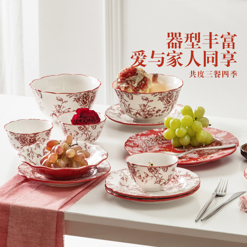 舍里法式 陶瓷餐具家用碗盘组合手绘小清新米饭碗小碗深盘菜盘餐盘