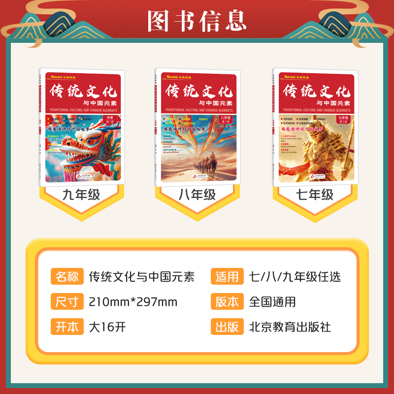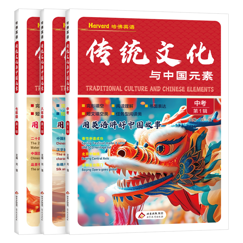 2025新哈佛英语传统文化与中国元 素七八九年级英语时文阅读与写作中考第一辑完形填空阅读理解书面表达短文填空任务型阅读