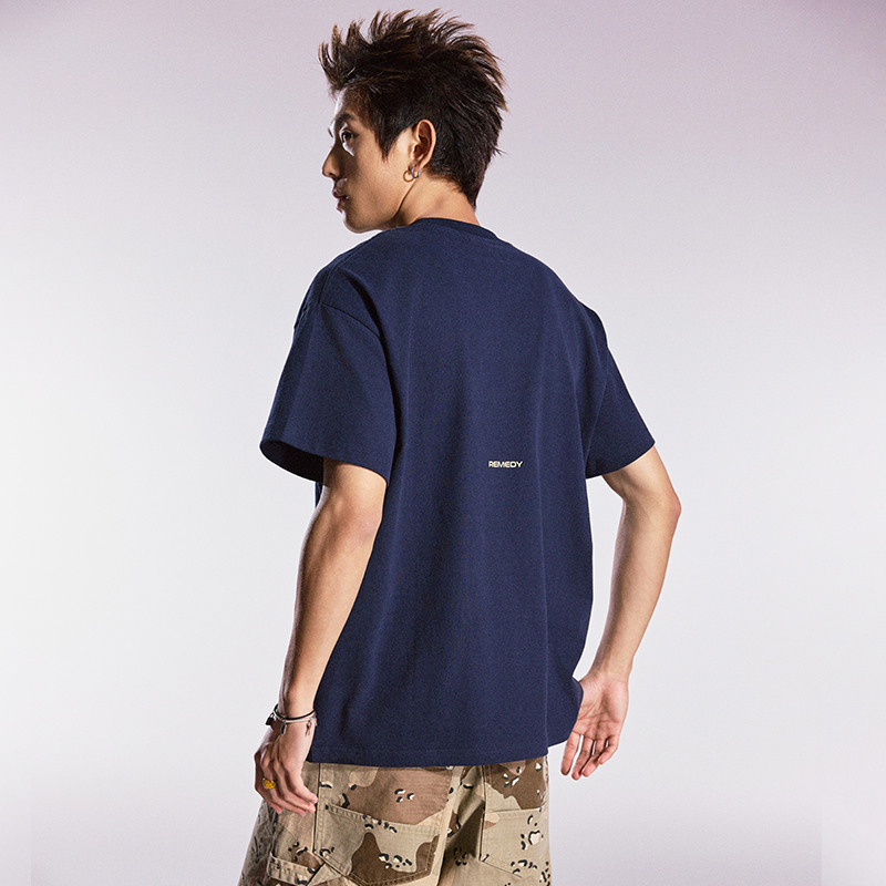 街头潮牌宽松情侣短袖 体恤美式 T恤男 国潮帮手刺绣半袖 Remedy夏季