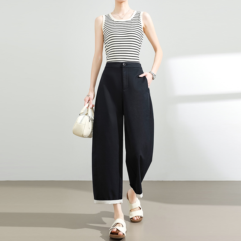 高腰宽松显瘦九分卷边休闲哈伦裤 2025薄款 女夏季 莱赛尔天丝弯刀裤