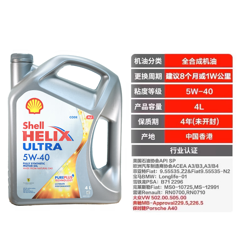 原装 40全合成机油超凡喜力汽车机油4L 进口 壳牌灰壳机油5W Shell