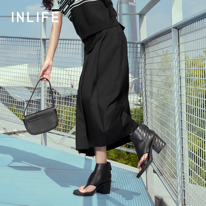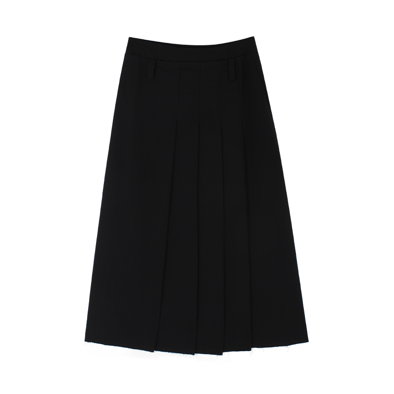 伊纳芙黑色西装 高腰显瘦百褶裙垂感a字中长裙 半身裙女2025秋新款