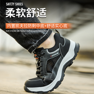 防砸防刺透气耐磨柔软防滑轻便工地安全鞋 夏季 新款 男士 网孔劳保鞋