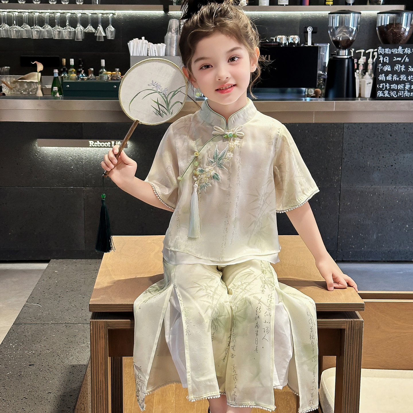 女孩夏季 女童夏套装 薄款 儿童汉服好看国风中式 古风两件套 2025新款