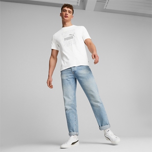 印花运动上衣 夏季 686396 T恤男子PUMA彪马新款 纯棉白色休闲短袖