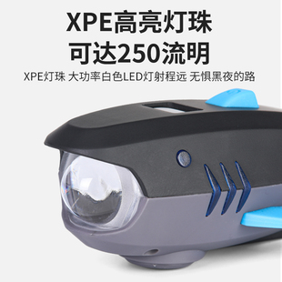 自行车灯前灯夜骑车灯山地车骑行装 备配件儿童鲨鱼超响铃铛喇叭