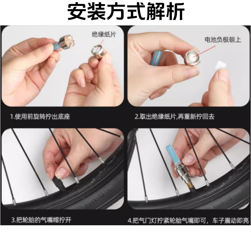 自行车气门灯小配饰配件气嘴山地车装 备风火轮车轮夜骑轮胎闪光灯