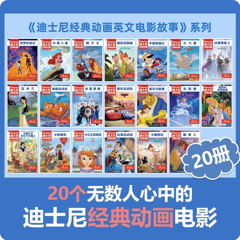 20册迪士尼经典 动画英文电影故事书疯狂动物城儿童启蒙英语分级阅读绘本一二三四五六年级小学生课外书必读睡美人花木兰赛车总动员