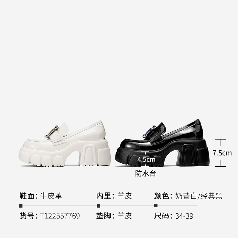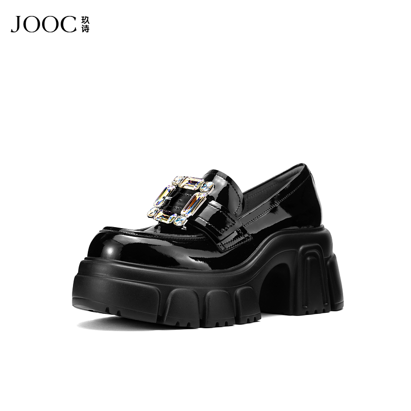 单鞋 JOOC玖诗百搭小皮鞋 时尚 英伦风真皮乐福鞋 黑色 女2025早春新款