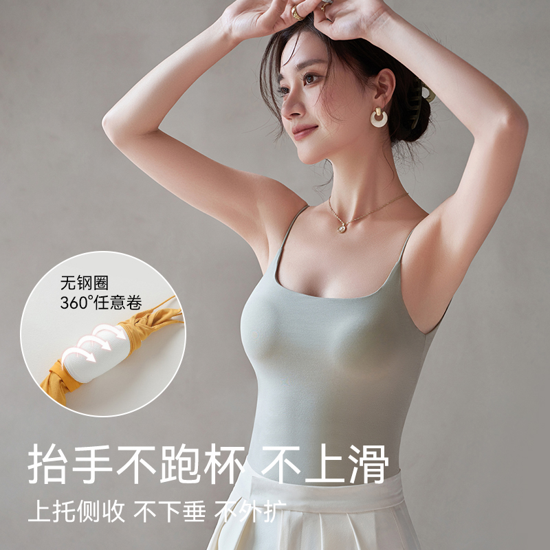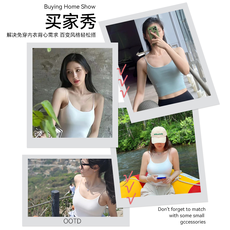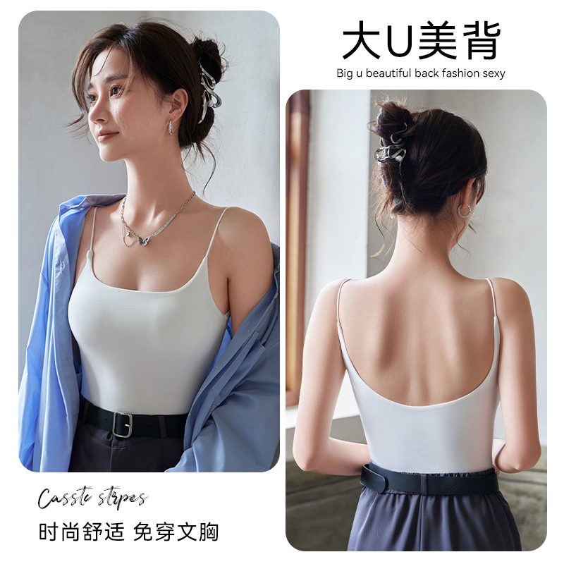白色吊带带胸垫女外穿夏季 露背上衣辣妹内搭U型美背背心遮副乳