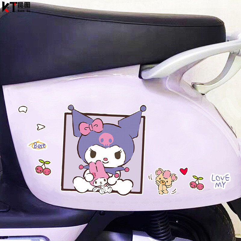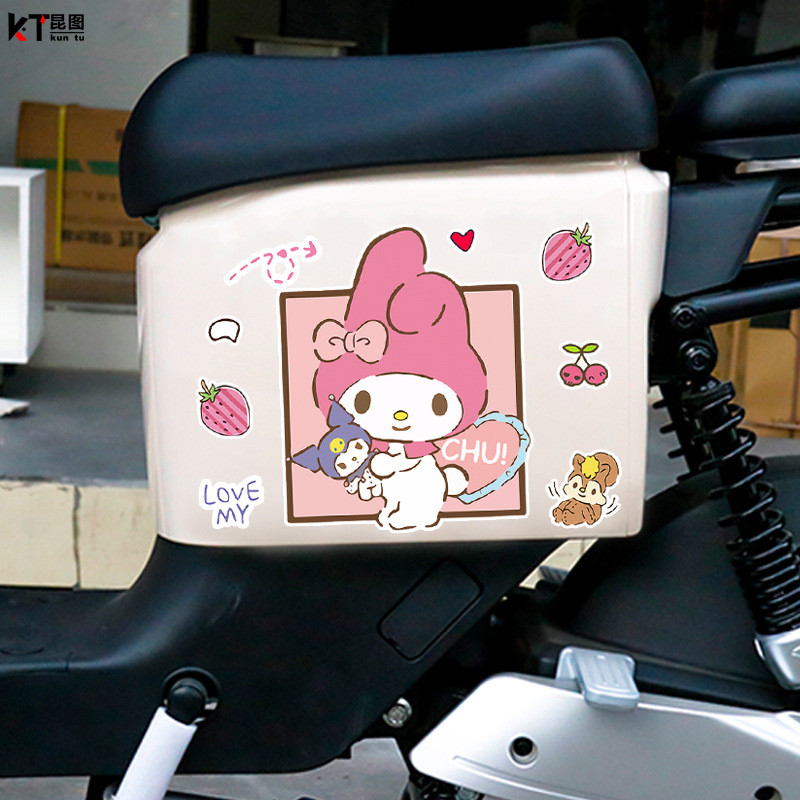 电动车贴三丽鸥汽车摩托车身贴纸卡通划痕遮挡电瓶车行李箱装 饰贴