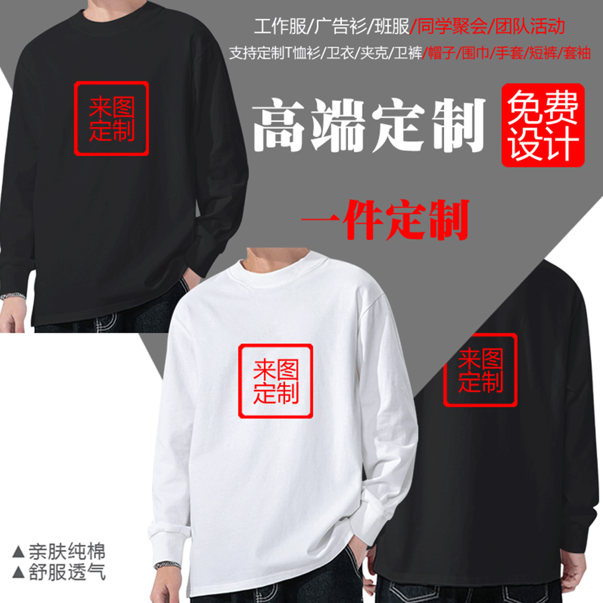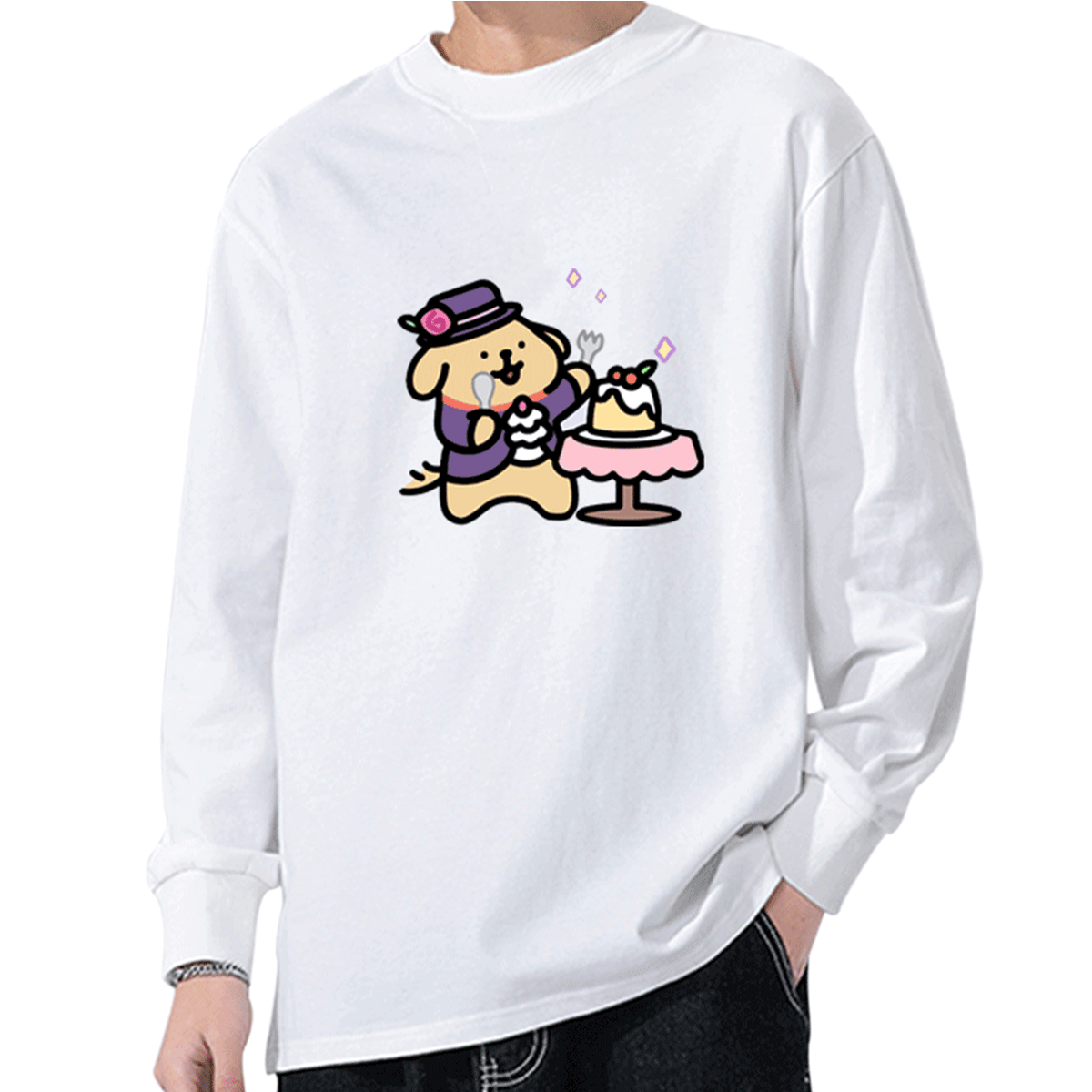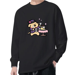 卡通线条小狗马尔济斯周边男女情侣学生百搭定制打底纯棉长袖 T恤