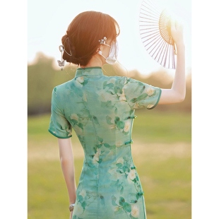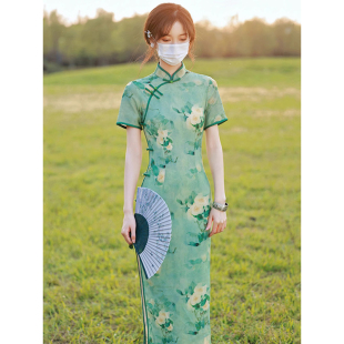 气质长款 旗袍2025年新款 中袖 少女中国风复古改良版 显瘦优雅 年轻款