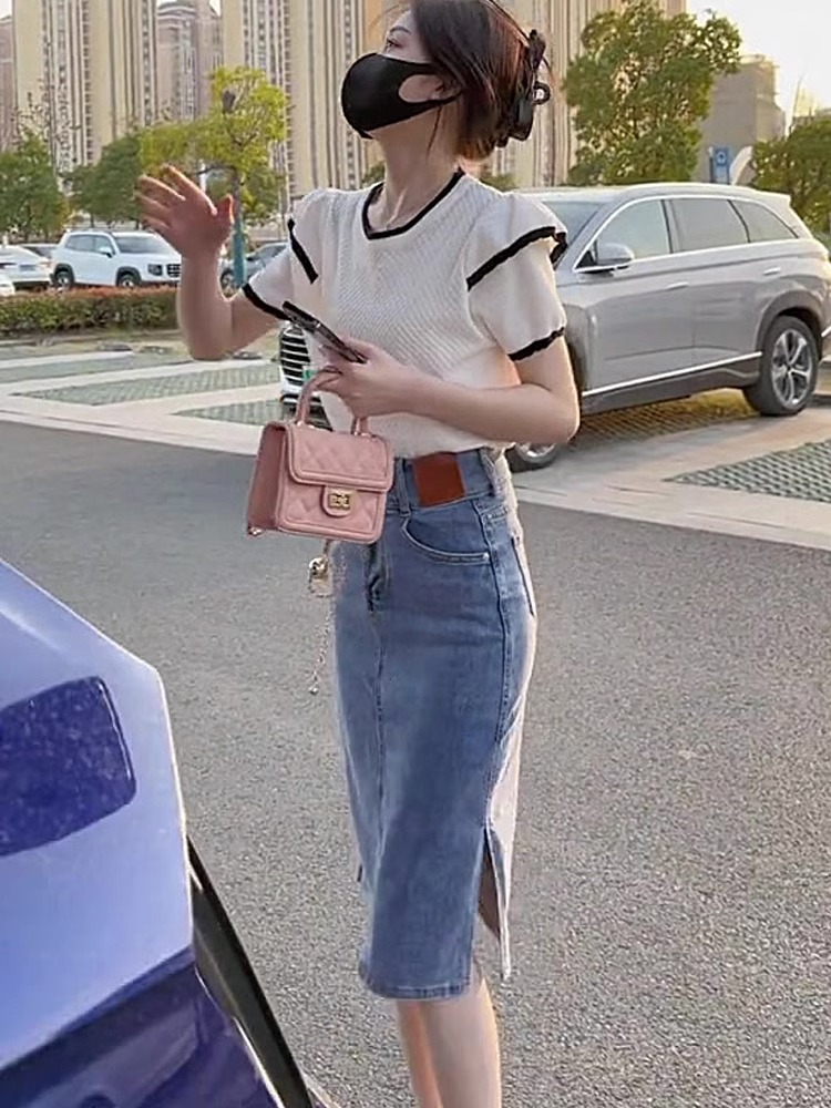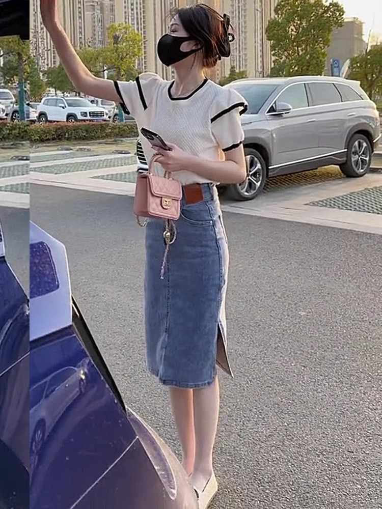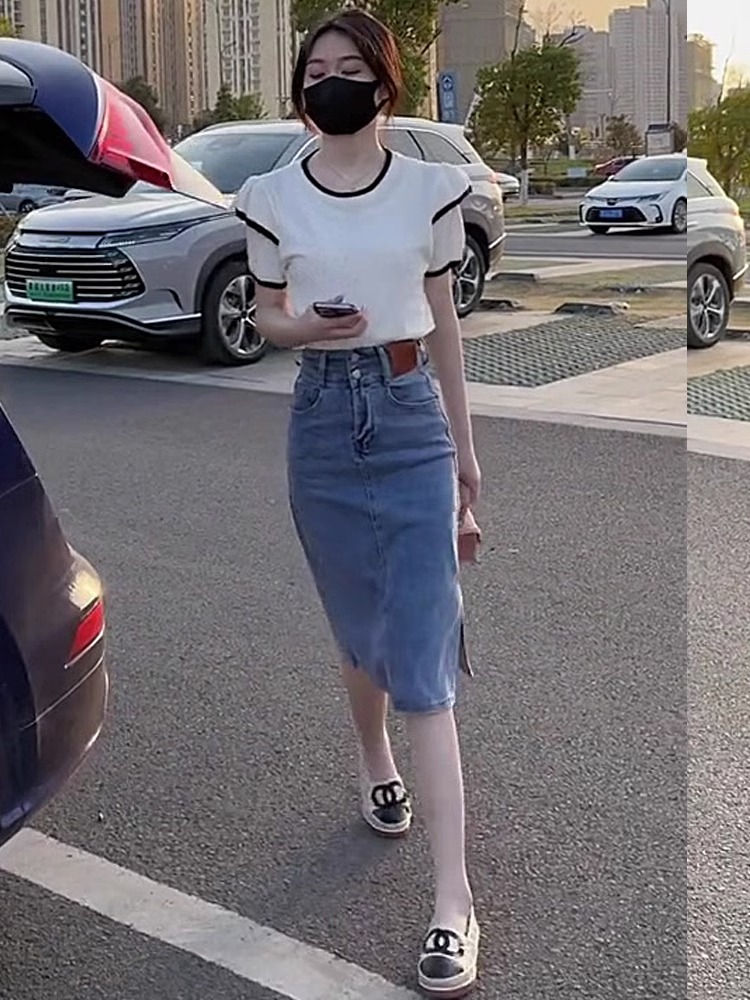 半裙a字小个子包臀裙 中长款 高腰开叉牛仔半身裙女2025年新款 夏季