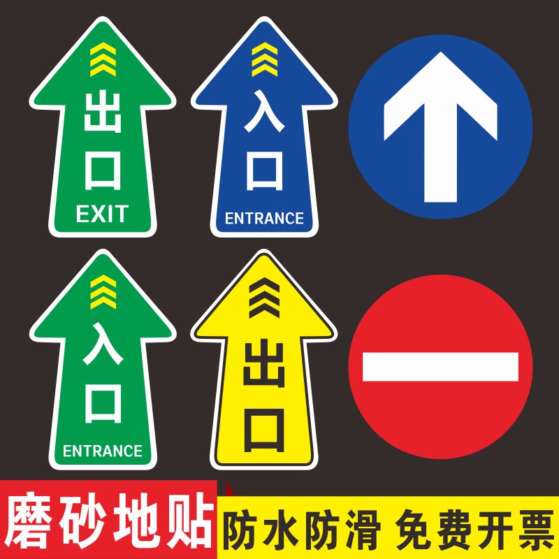 进出口标识地贴银行洗手间方向指引箭头磨砂提示贴小心台阶小心地滑商场出入口地面防滑标贴耐磨当心防水注意
