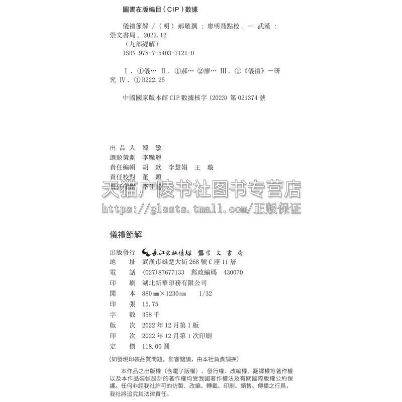 仪礼注释 郝敬 儒家经典 思想解读 崇文书局 九部经解·仪礼节解 正版 明